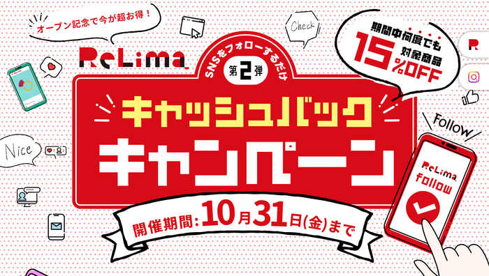 ▶「キャッシュバック・キャンペーン」詳細ページ:https://jp.relima.jp/cashback/