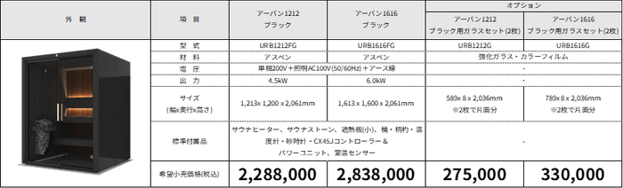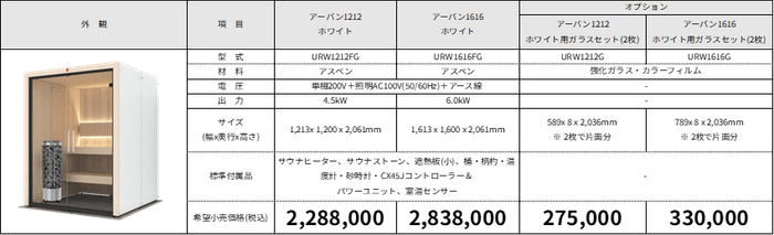 ■アーバンサウナキャビンラインナップ(全4型 +オプション)